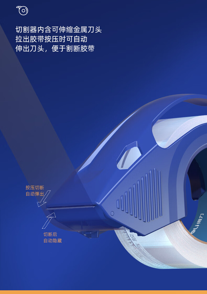 得力(deli)封箱胶带/打包胶带/家庭静音胶带 48mm*100m*60μm 1卷装 带切割器 30044透明
