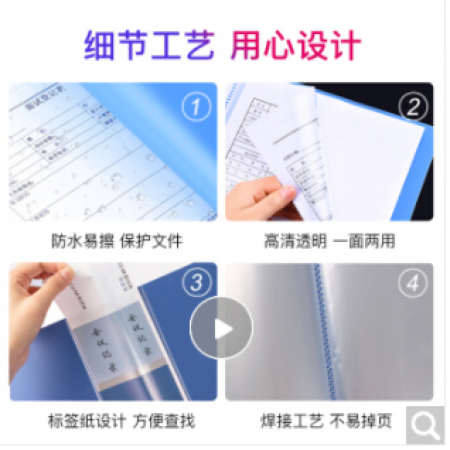 商品名称:齐心(COMIX)资料册100页a4文件夹插页袋活页插页文件夹透明合同收纳 100页PF100AK-1蓝色(单个装)